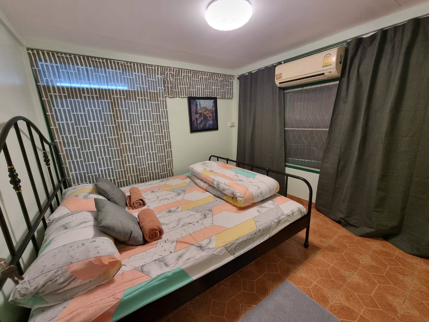 ห้องนอน 2 ห้องนอนแอร์โทนเขียวละมุม ตกแต่งด้วยภาพสีน้ำมันสะพานข้ามคลองเวนิส และดอกไม้ สร้างบรรยากาศสงบ พร้อมเตียงนอน 6 ฟุต สำหรับ 2 ท่าน ห้องน้ำรวม ใช้ร่วมกับห้องนอน 1